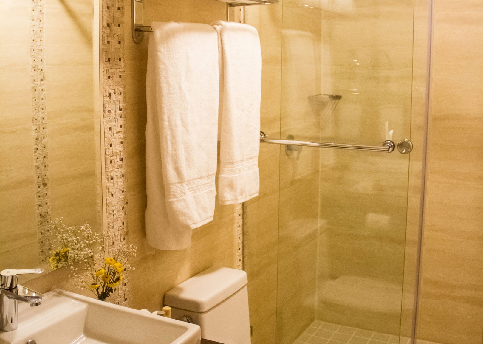 sta habitación doble cuenta con artículos de aseo gratuitos, baño privado con ducha y secador de cabello, aire acondicionado, TV de pantalla plana con canales por cable y cafetera.